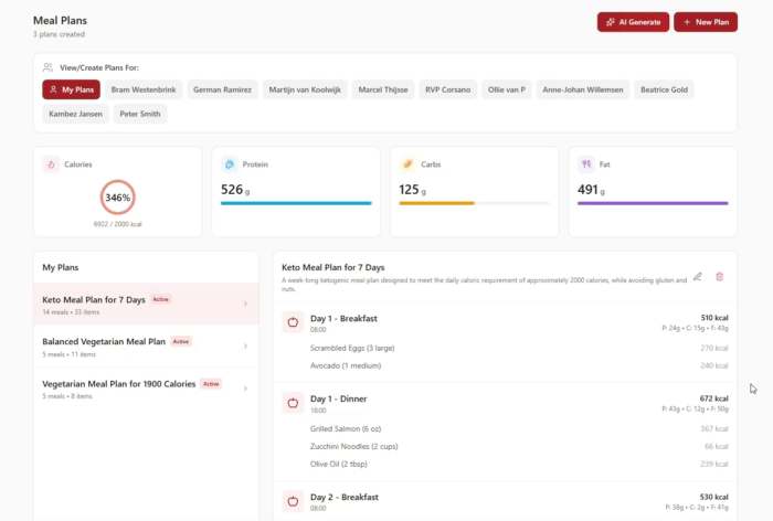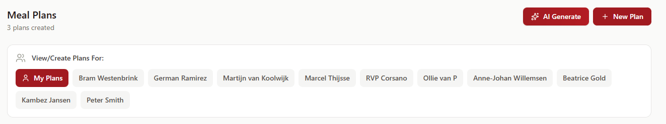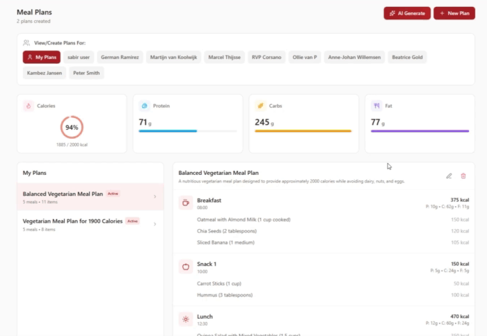 Prefer full control? You can also create meal plans manually. This is ideal for coaches or users who want to design custom plans while keeping everything structured in one place.